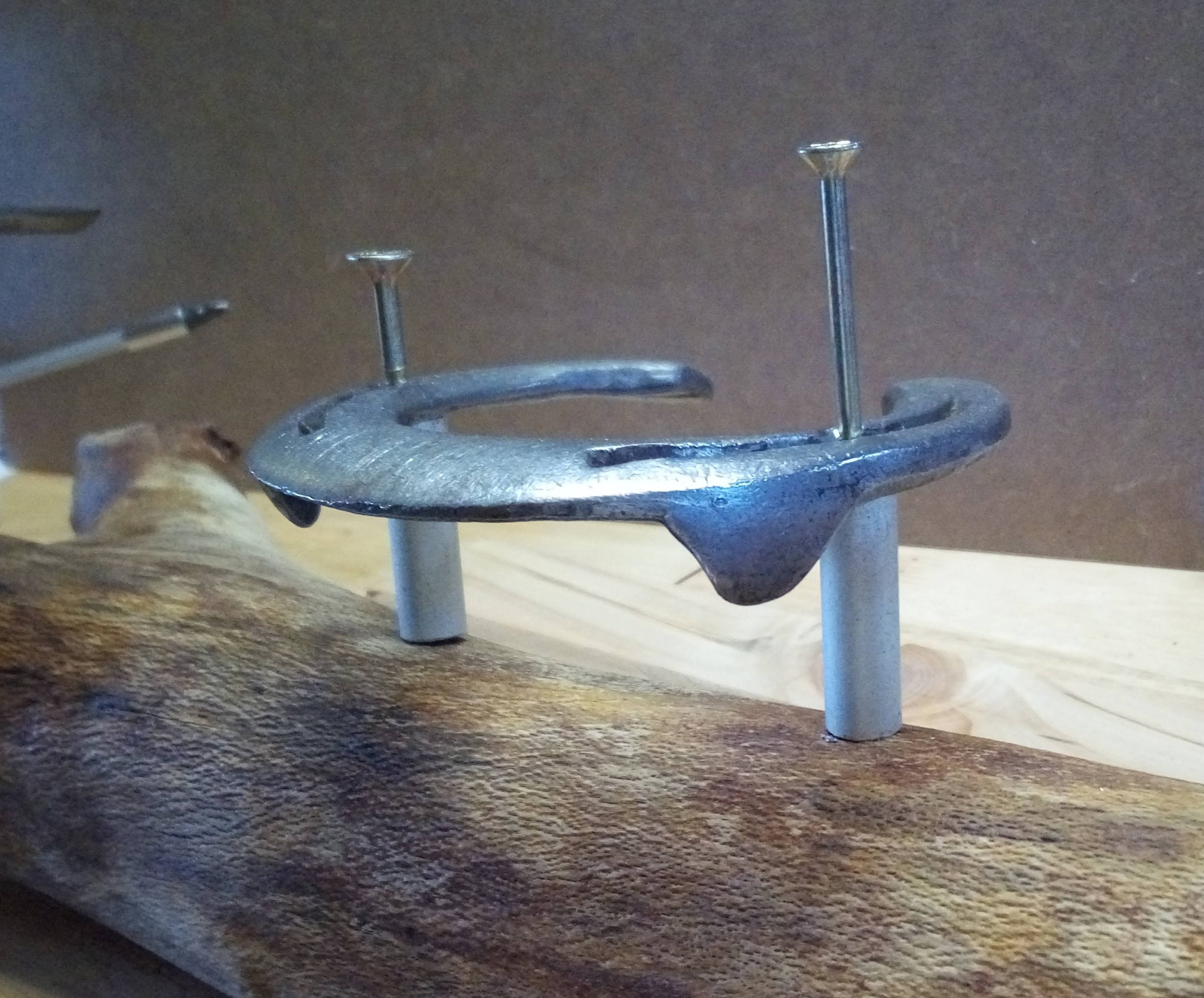 Schlüsselhalter aus Buchenast, altem Hufeisen und Hufnägeln